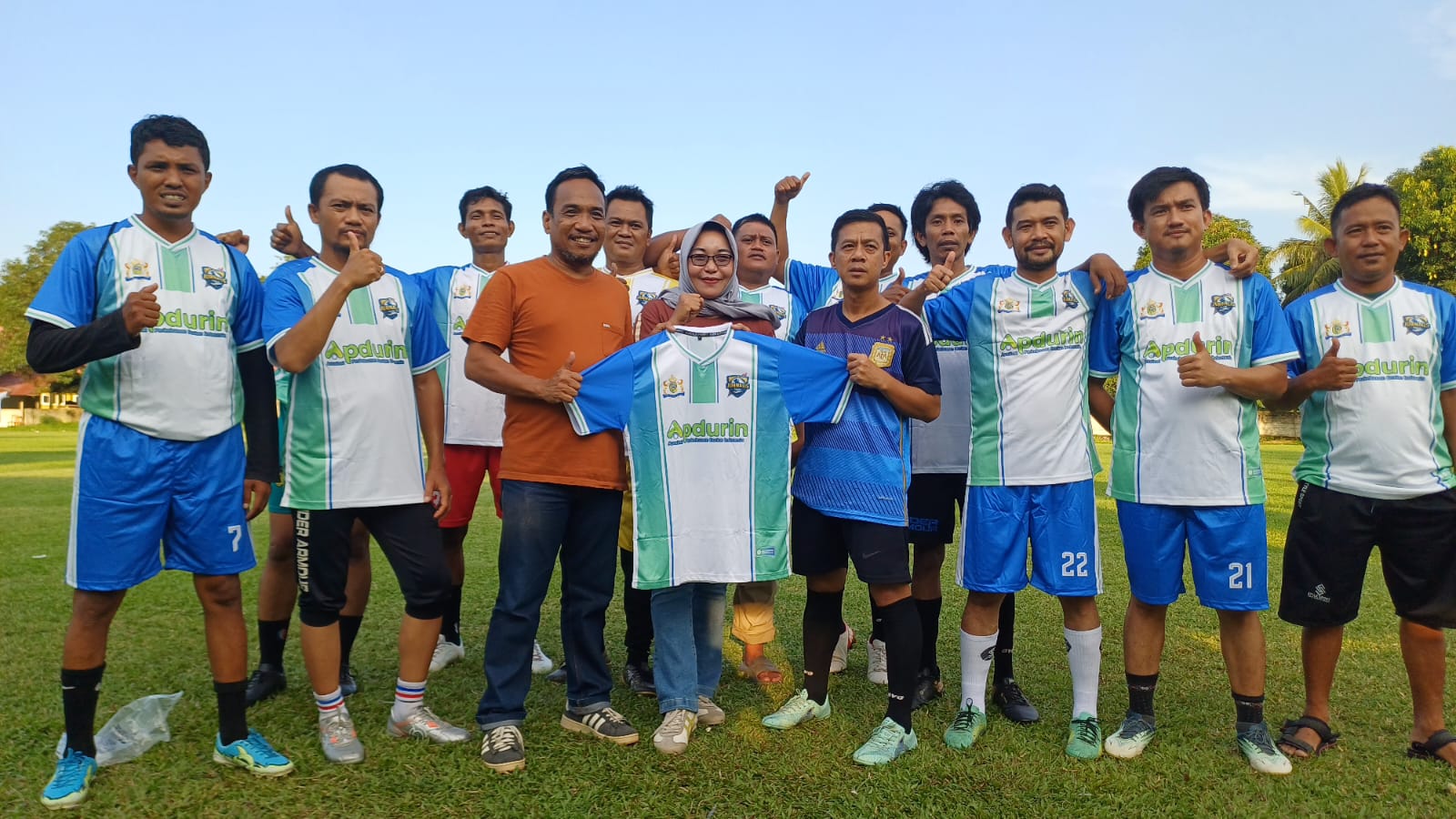 Penyerahan dilakukan secara simbolis oleh Ketua Apdurin Parimo, Hengki Idrus, bersama Ketua Kamar Dagang dan Industri (Kadin) Parimo, Faradiba Zaenong, kepada kapten tim Jurnalis Parigi FC, Bambang.