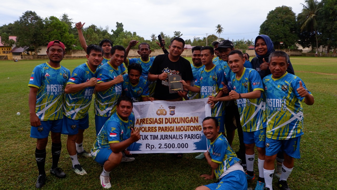 Dalam kesempatan itu, Kapolres Parimo menyerahkan bantuan dana sebesar Rp 2,5 juta kepada tim Jurnalis Parigi FC.