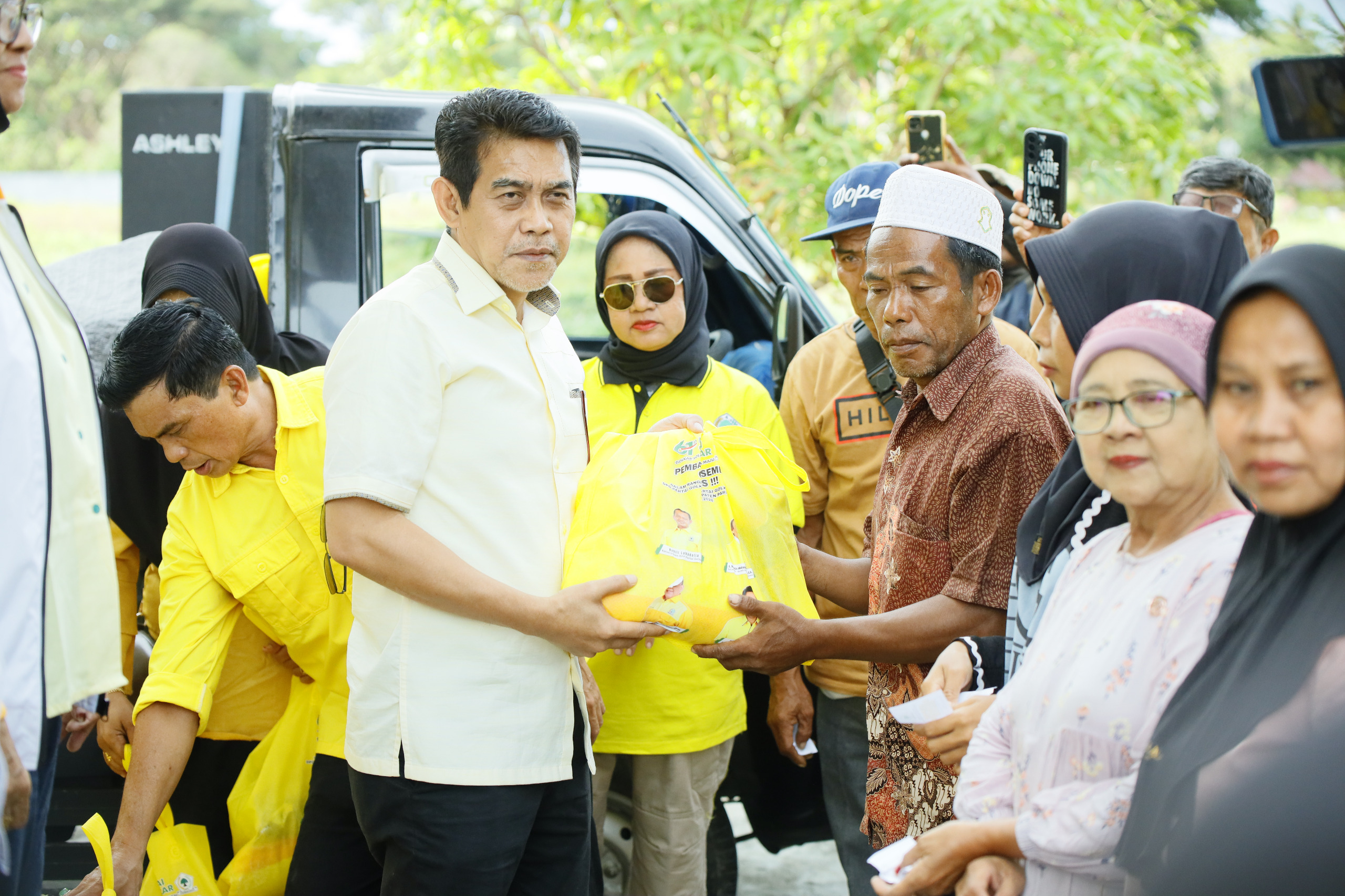 Kegiatan sosial itu turut dihadiri jajaran pengurus DPD Partai Golkar Parimo. Penyerahan sembako dilakukan secara simbolis kepada perwakilan warga penerima, yang kemudian dilanjutkan dengan pembagian langsung kepada masyarakat.