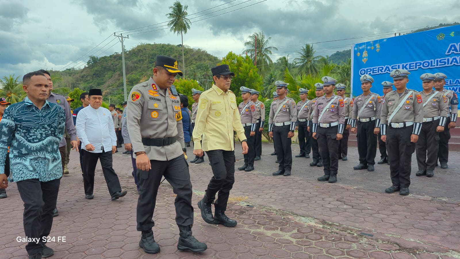 Bupati Parimo, Erwin Burase bersama Kapolres Polres Parimo melakukan pemeriksaan pasukan saat Apel Gelar Pasukan Operasi Ketupat 2026 di halaman Mapolres Parimo, Kamis (12/3/2026). (Foto: Arifbudiman)