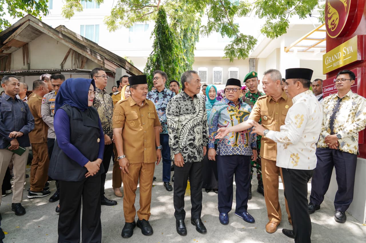 Gubernur Sulawesi Tengah bersama Ketua Kadin Parimo dan sejumlah pejabat daerah, Ketua DPRD Provinsi, Anggota DPR RI, serta unsur TNI-Polri, berdialog usai kegiatan pelepasan ekspor durian beku di Hotel Grand Sya Palu, Senin (27/4/2026). (Foto :Istimewa)